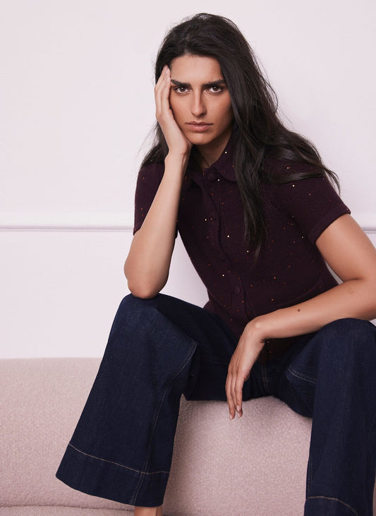 Burgundy Sequin Cotton Blend Cardigan