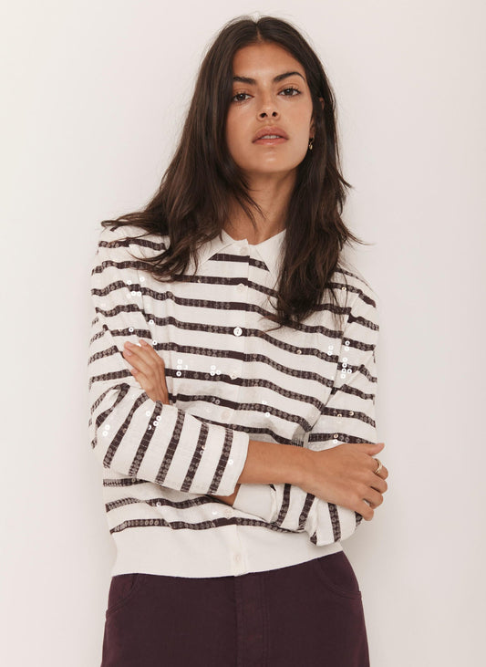 Burgundy Stripe Sequin Collar Cardigan