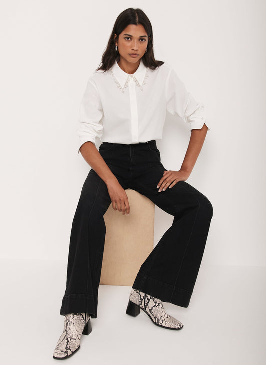 White Embellished Collar Cropped Shirt
