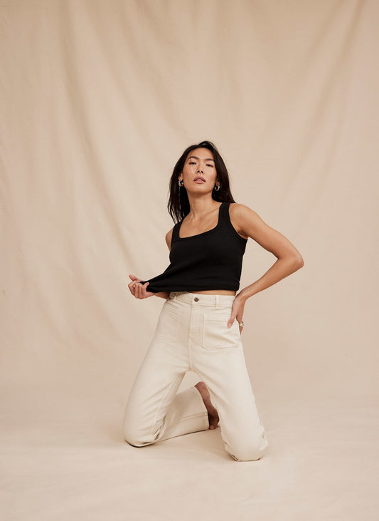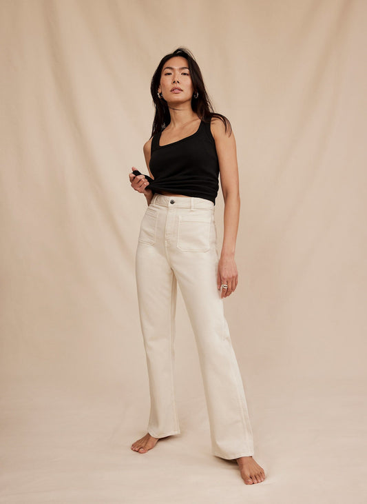 Neutral Wash Relaxed Bootcut Patch Pocket Jeans