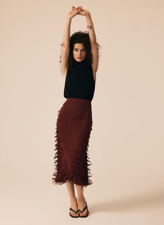 Burgundy Cotton Blend Scarf Detail Knit Top
