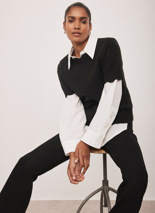 Brown Cotton Blend Scarf Detail Knit Jumper