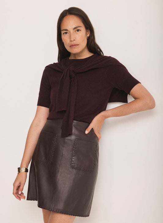 • Burgundy Leather Mini Skirt