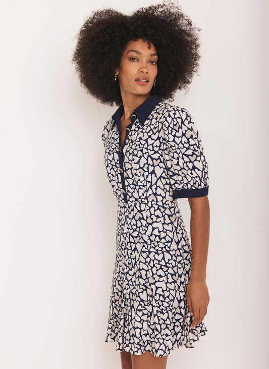 Navy Heart Print Mini Dress