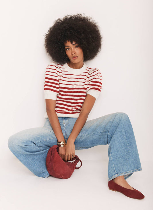Red Striped Puff Sleeve Knit Top