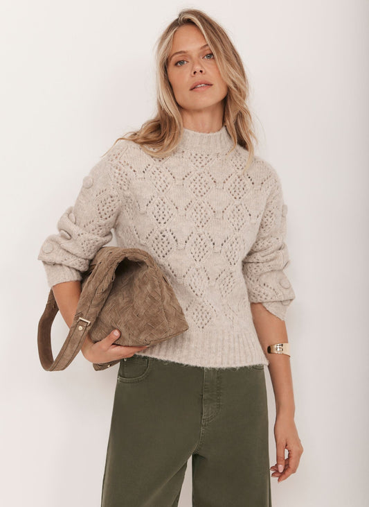 Neutral Cotton Blend Scarf Detail Knit Jumper