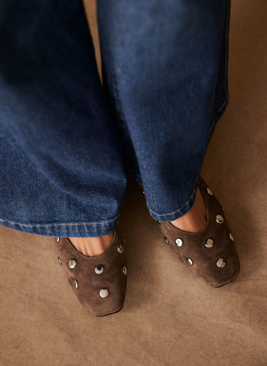 Coco Brown Suede Studded Flats