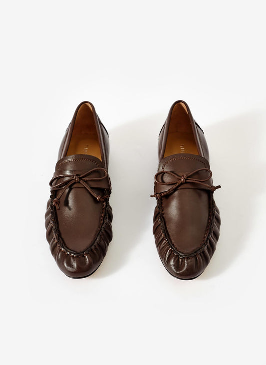 Imogen Brown Leather Ruched Loafers