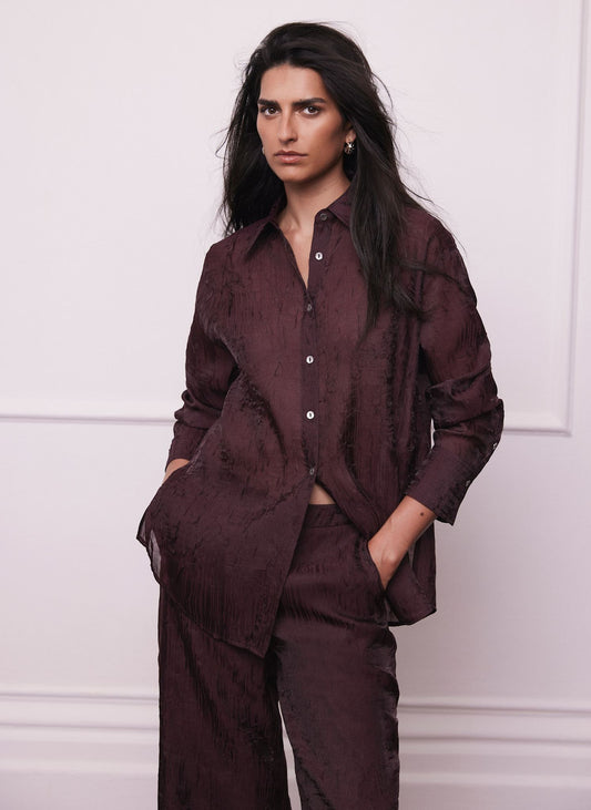 • Burgundy Oversized Tailored Shirt