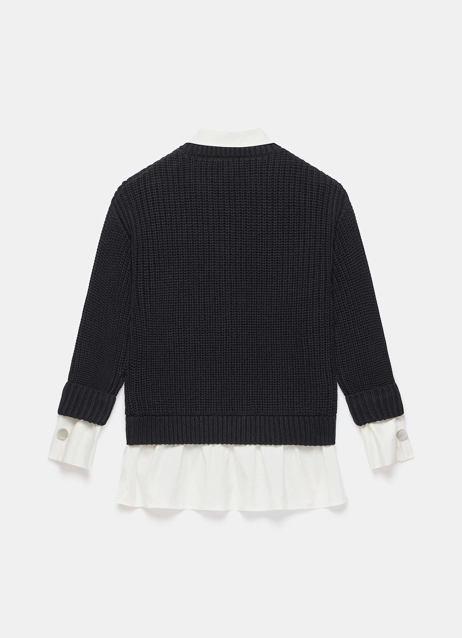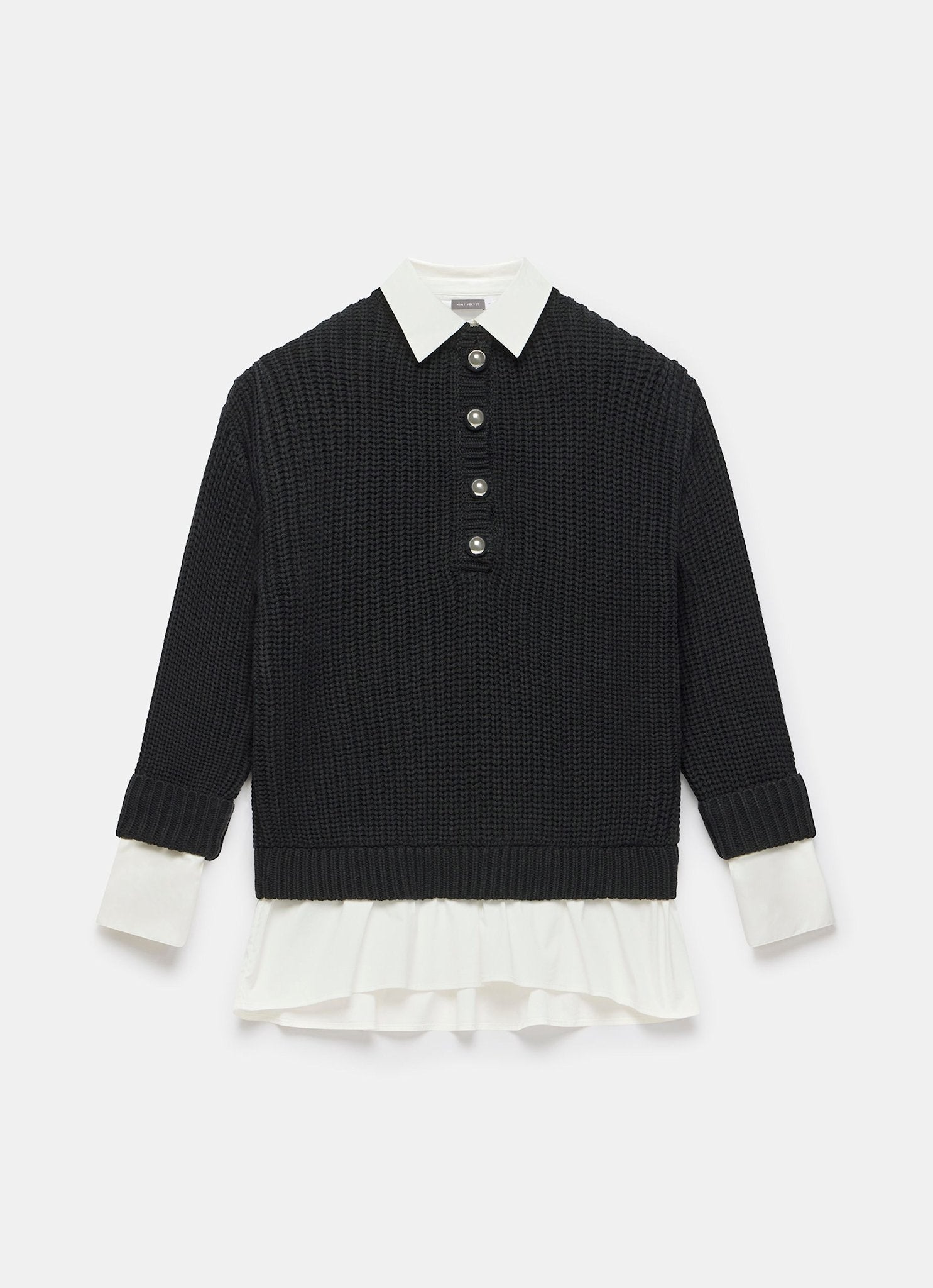 Black Button Detail Layered Shirt Knit Jumper