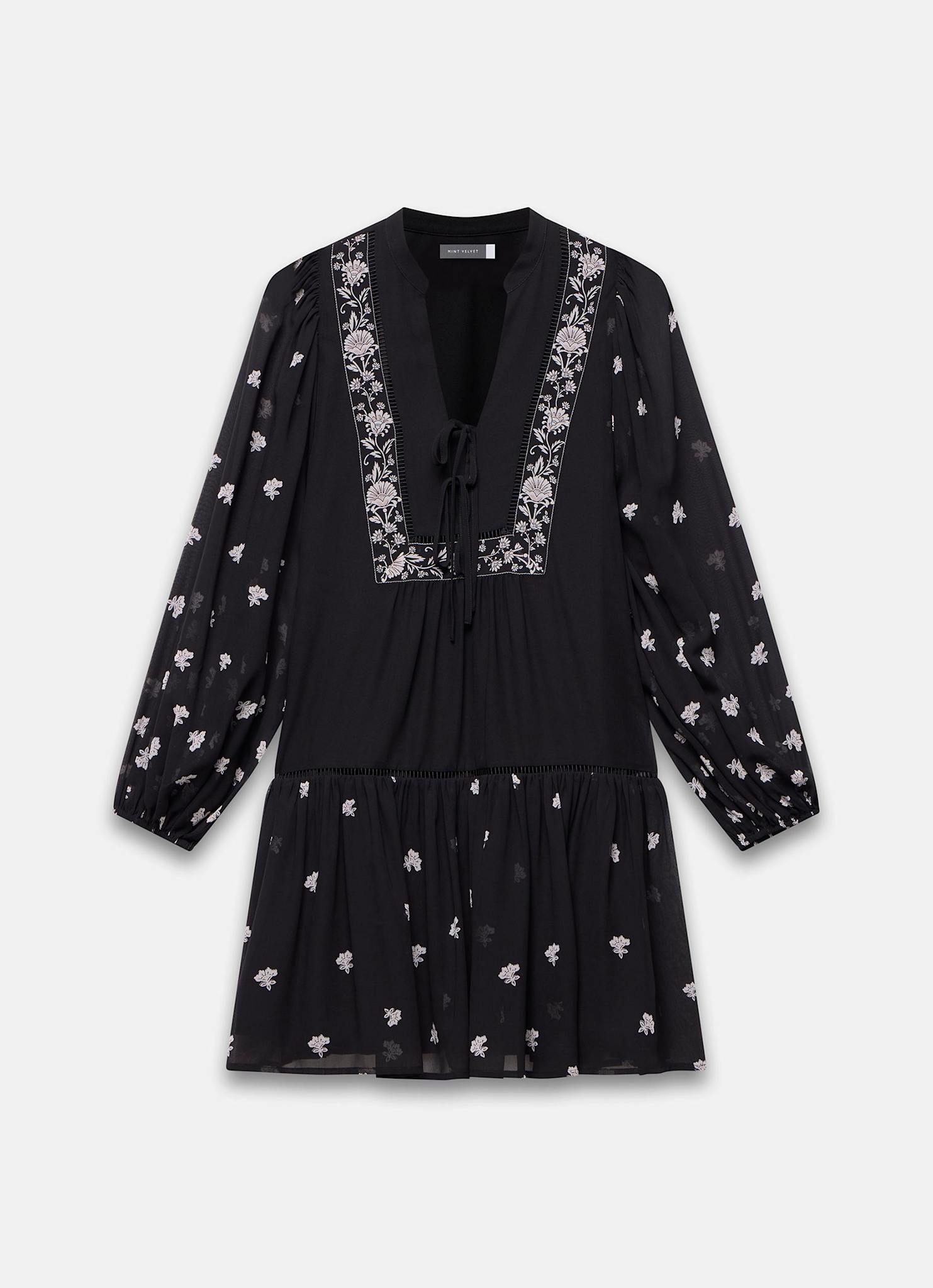 Black Floral Print Boho Mini Dress