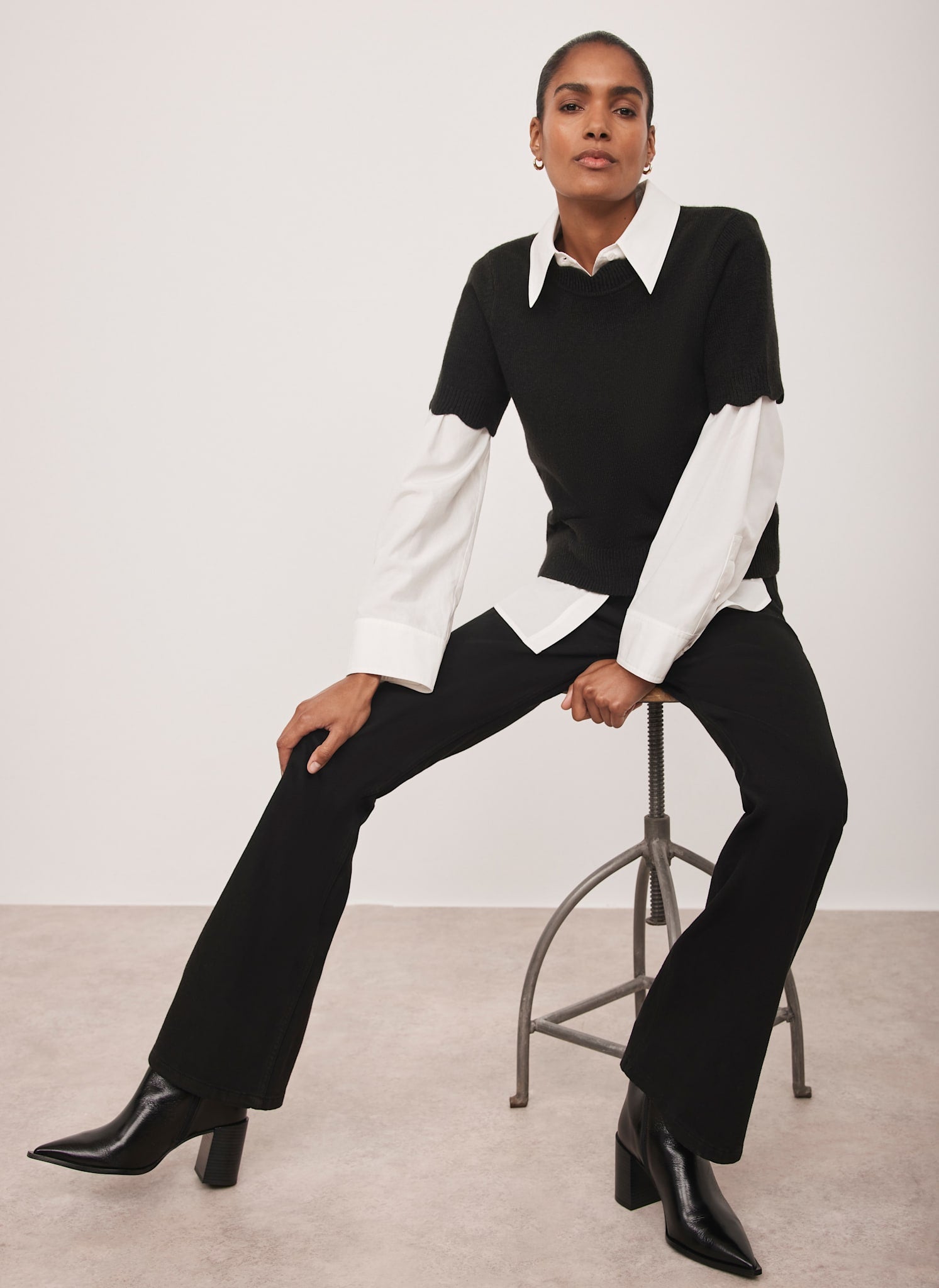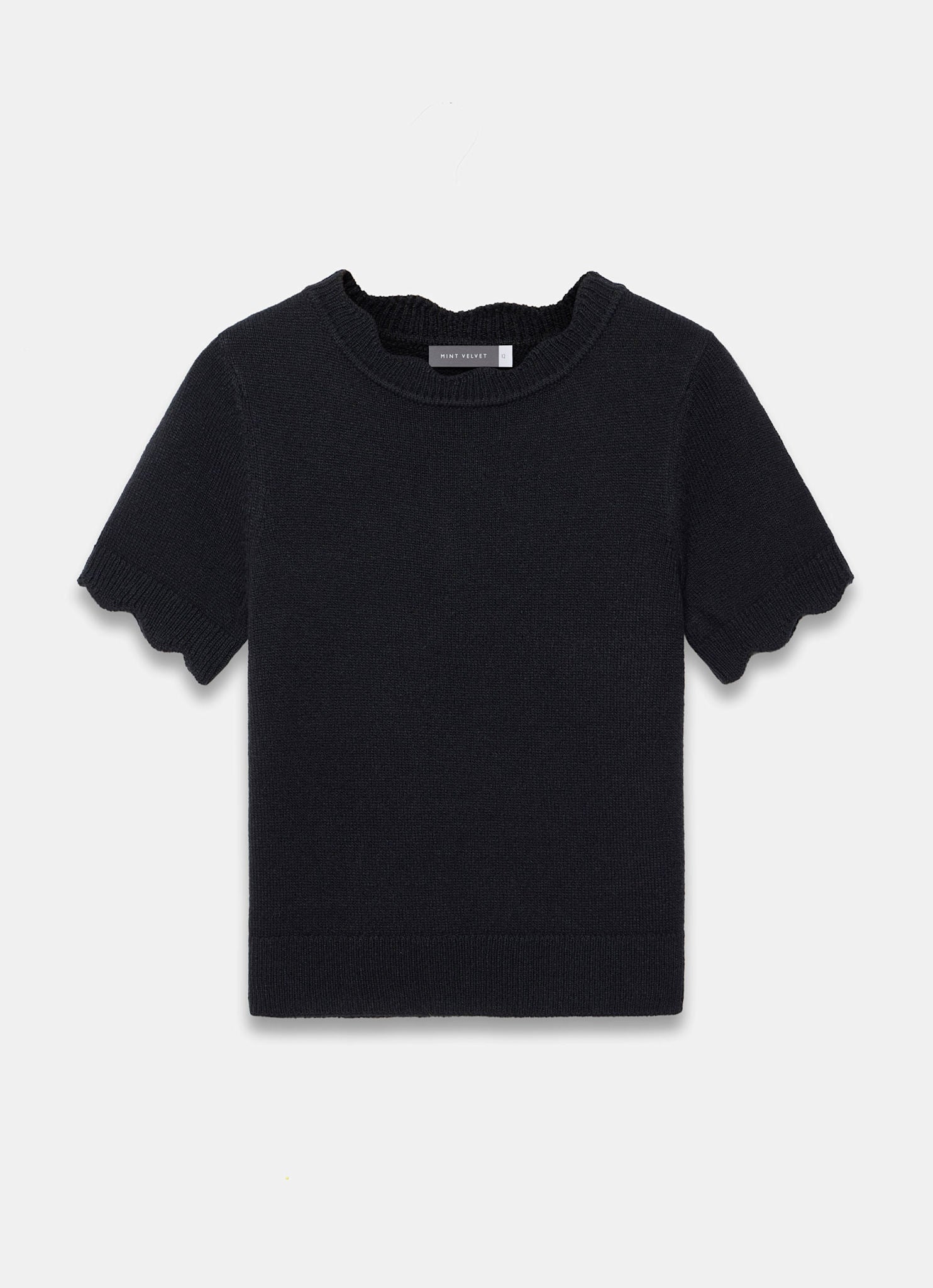 Black Scallop Knit Top