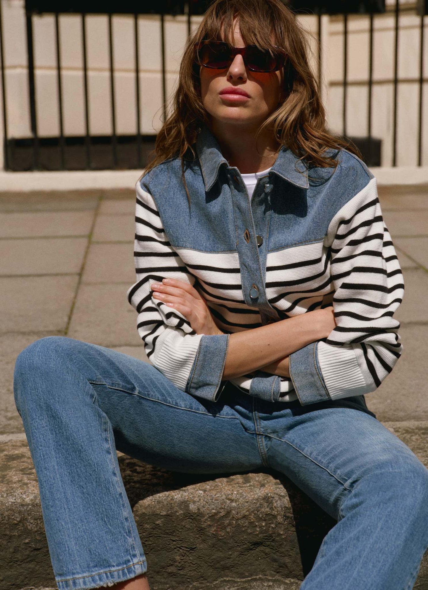 Blue Denim Striped Knit Jacket