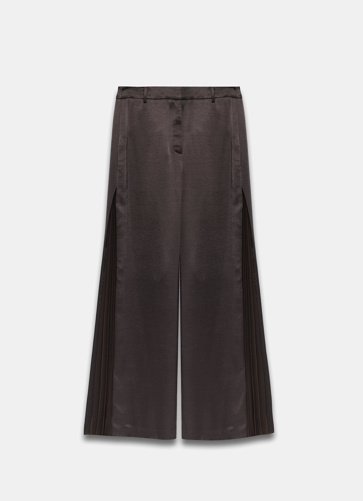 Brown Satin Side Pleat Wide Trousers