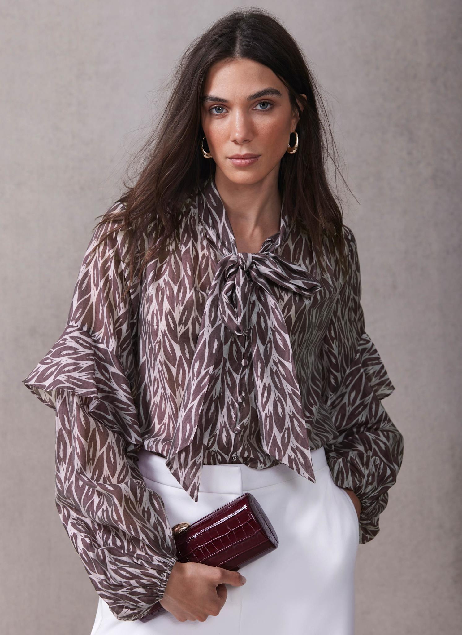 Burgundy Leaf Print Blouse