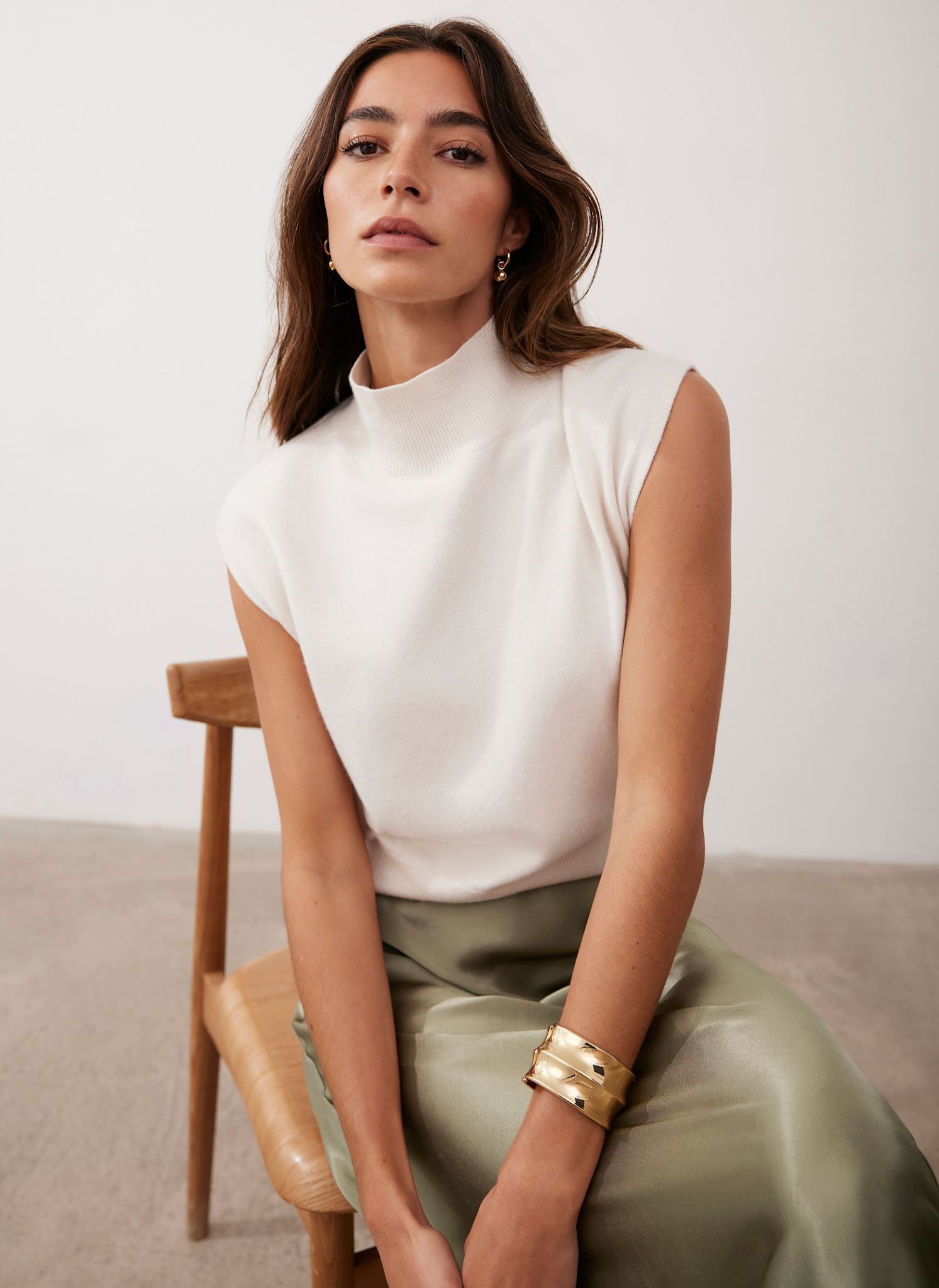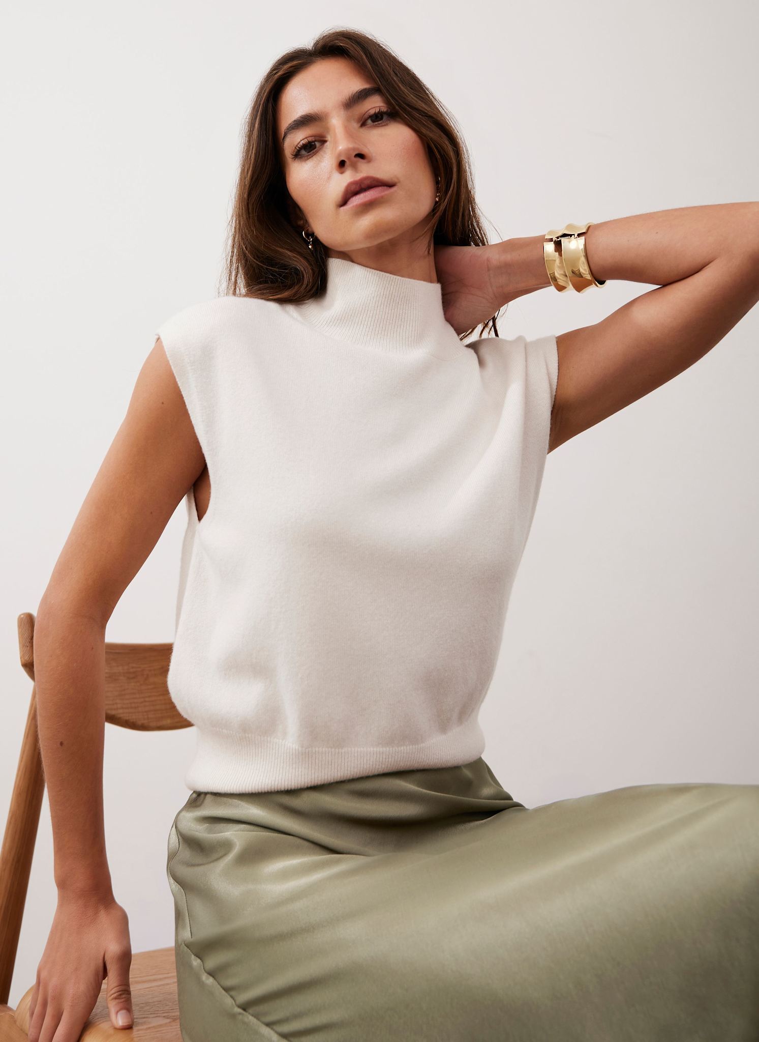 Cream Sleeveless Knit Top