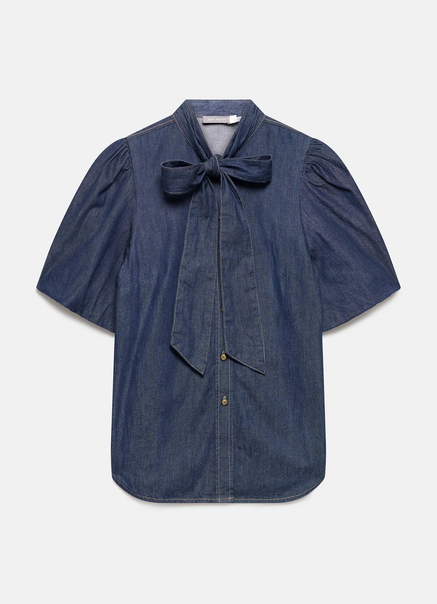 Dark Indigo Puff Sleeve Denim Shirt
