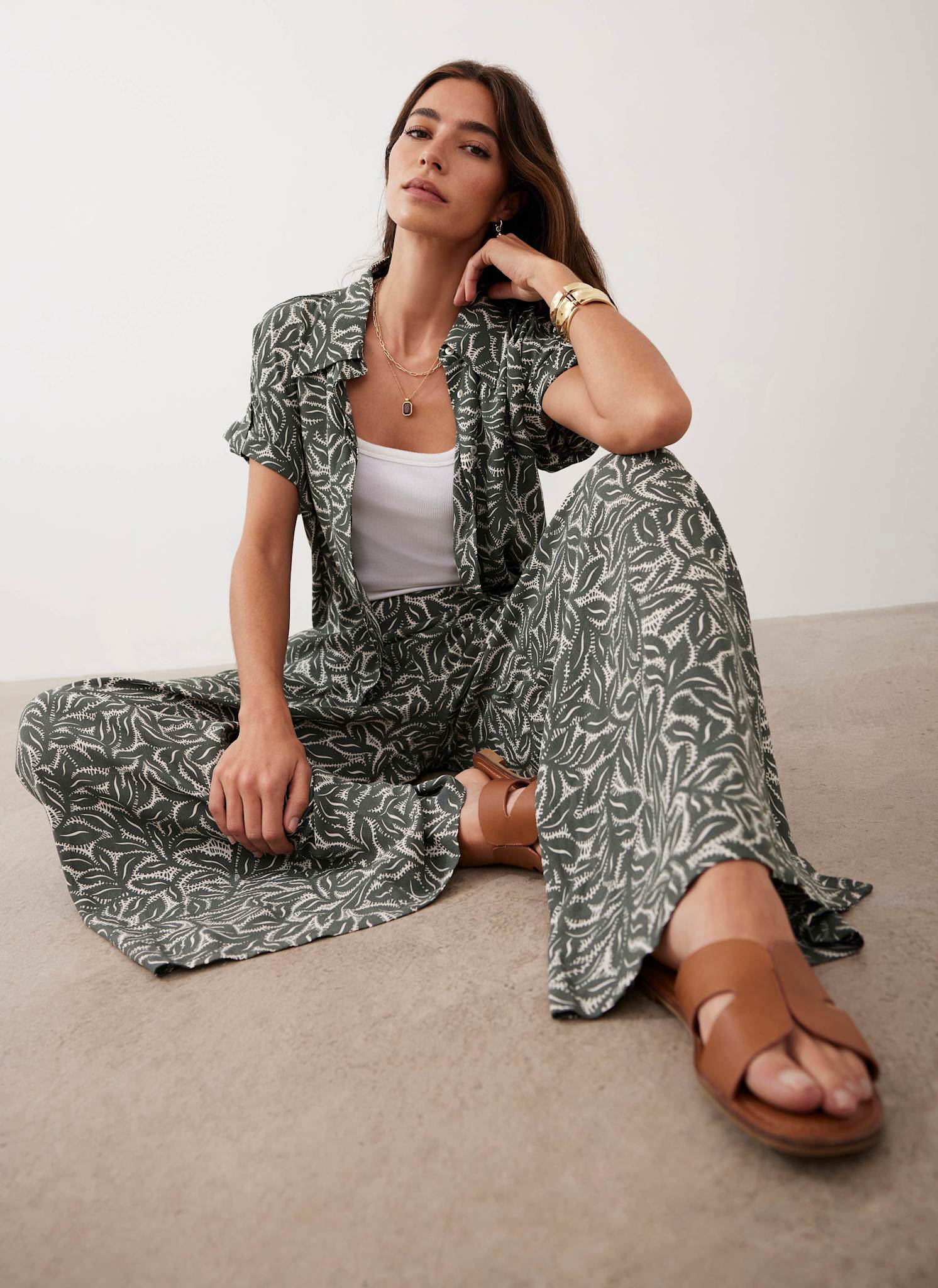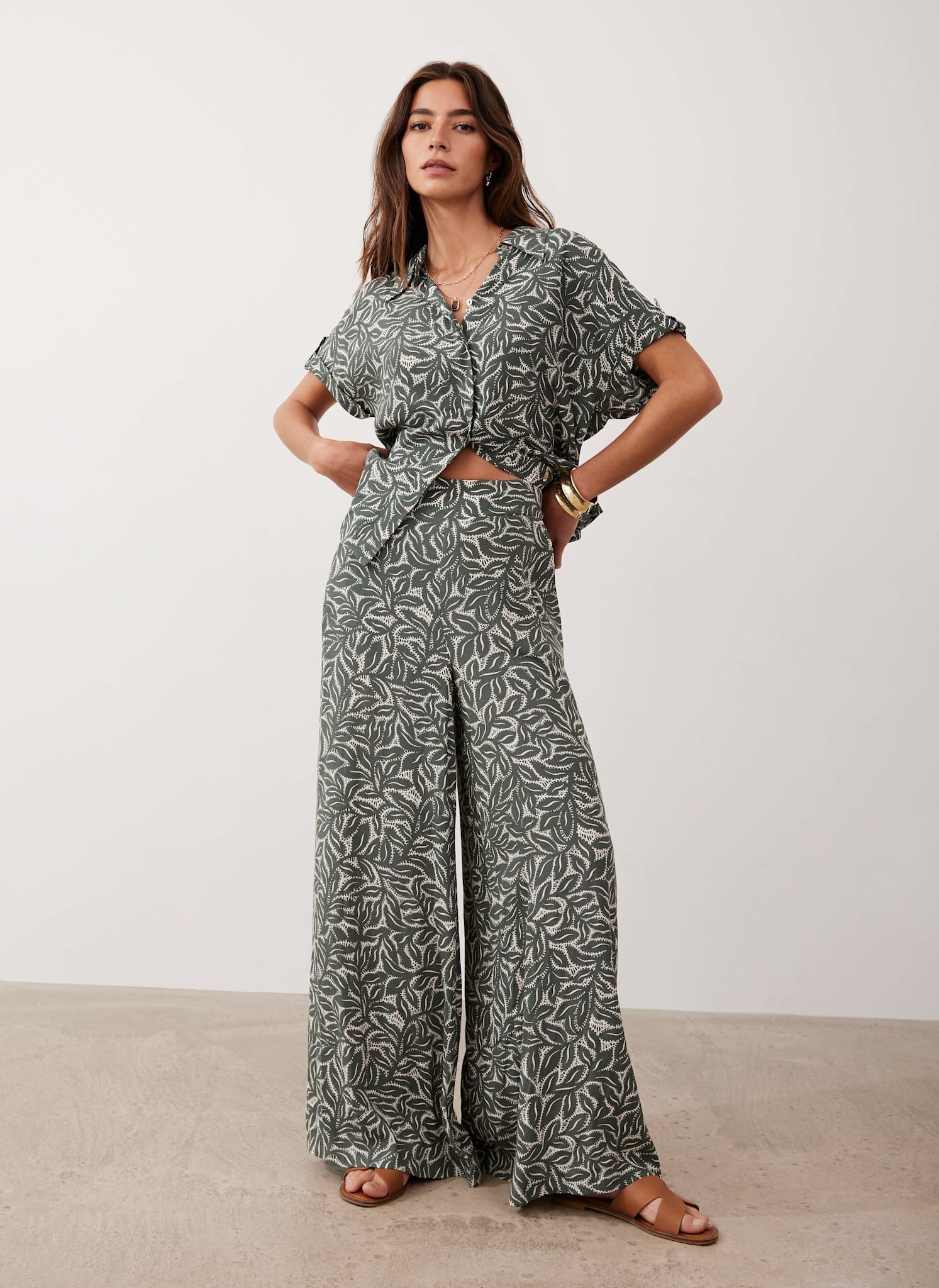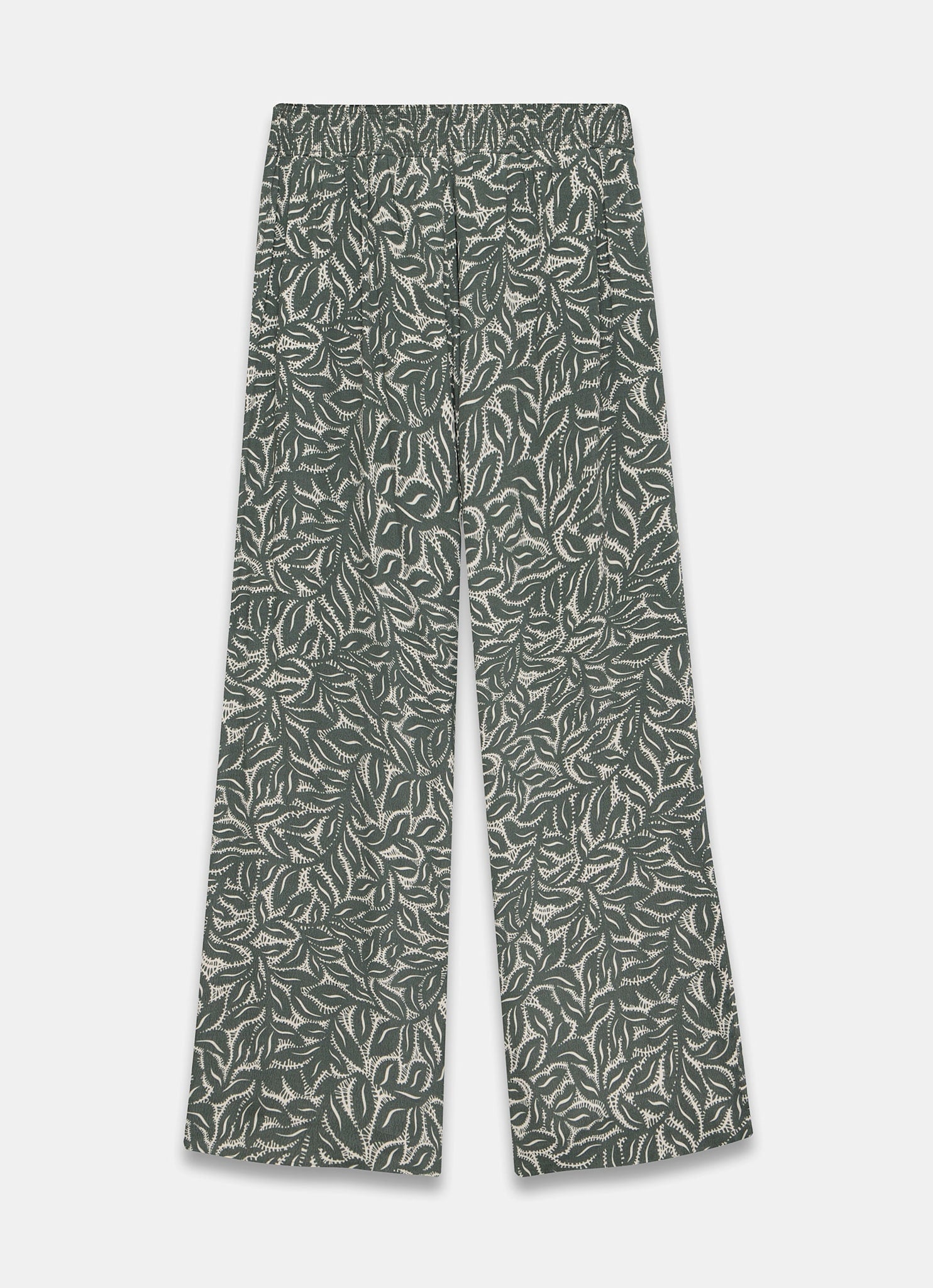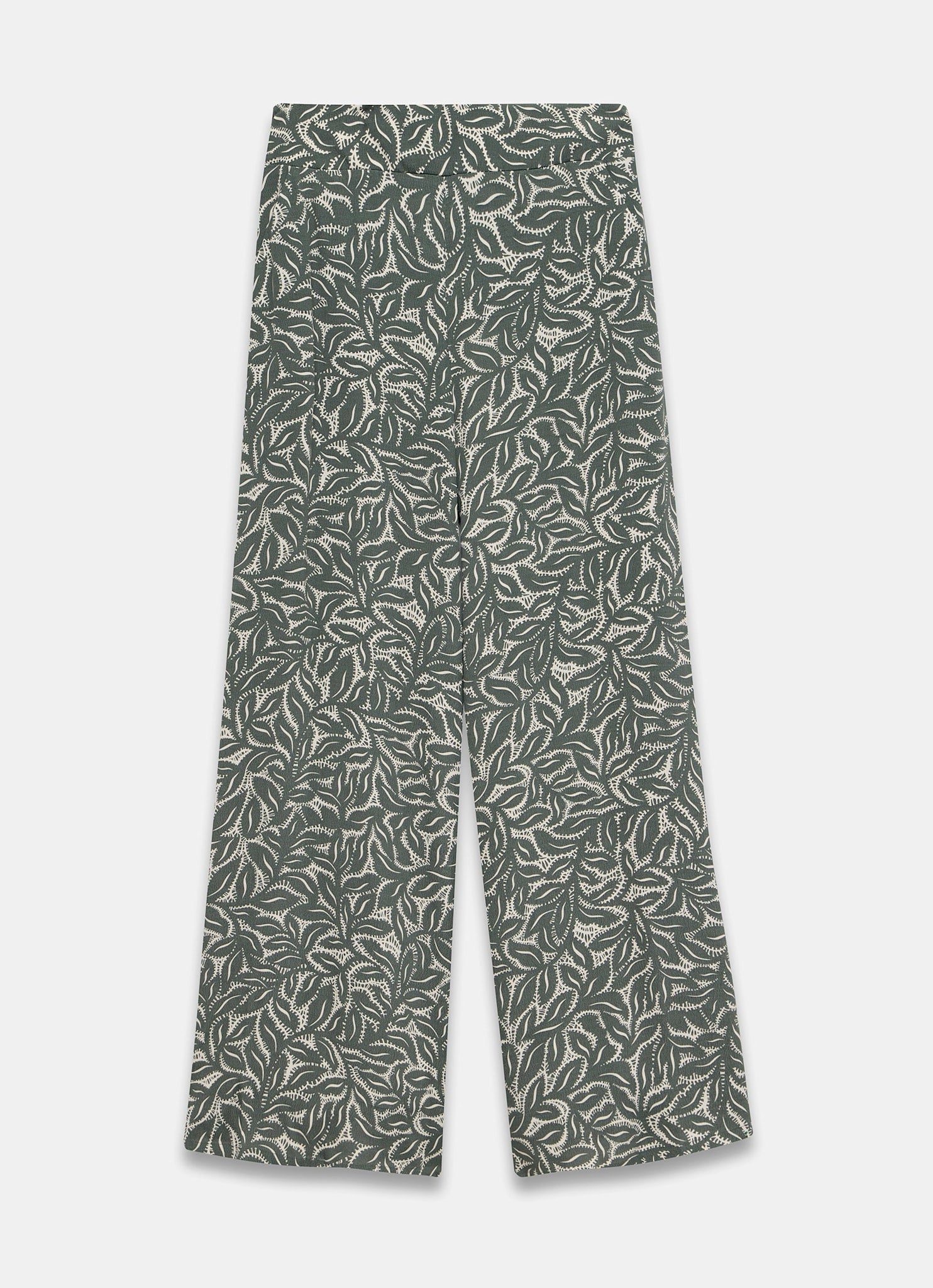 Green Leaf Print Wide Trousers