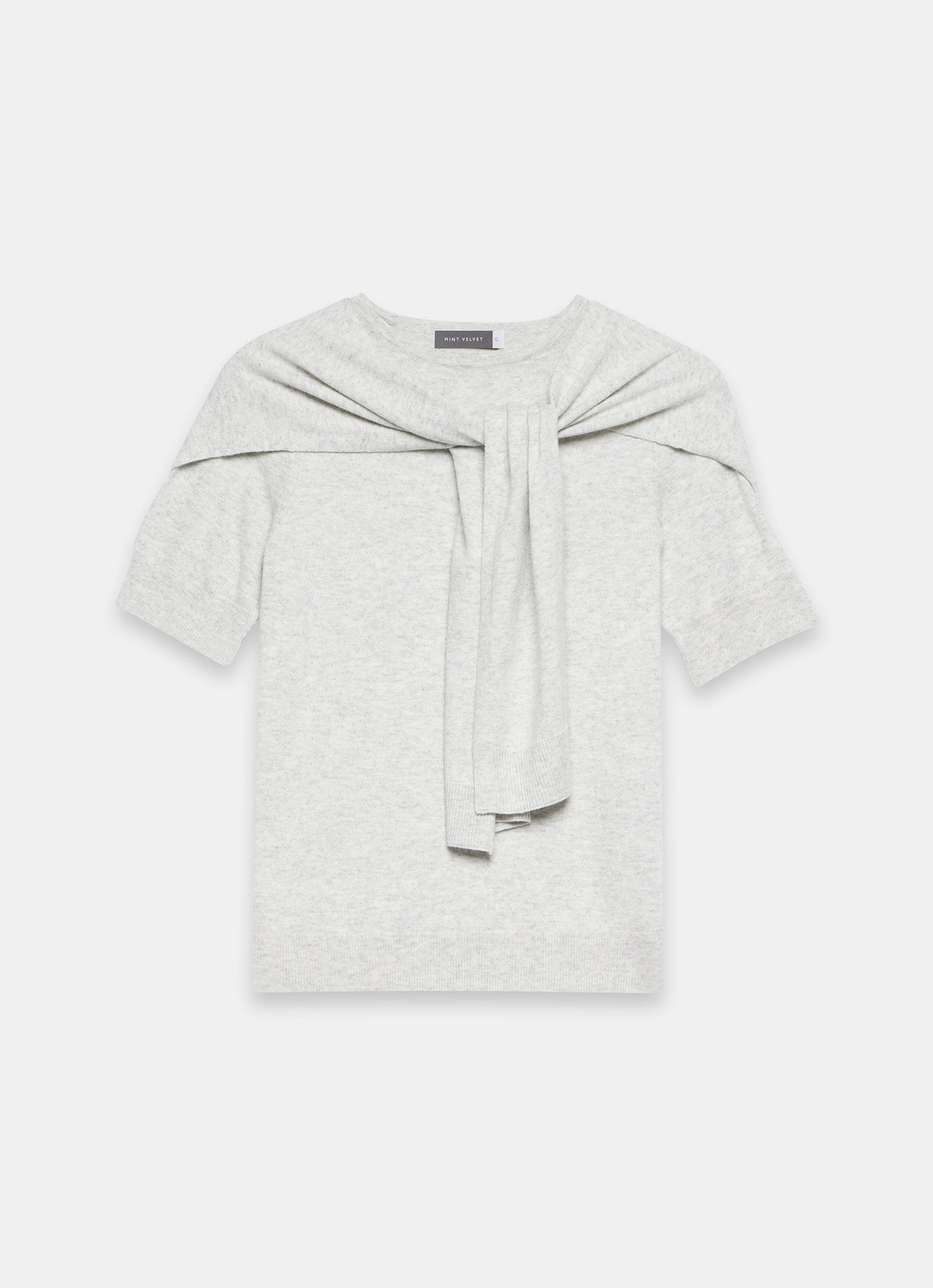 Grey Cotton Blend Scarf Detail Knit Top