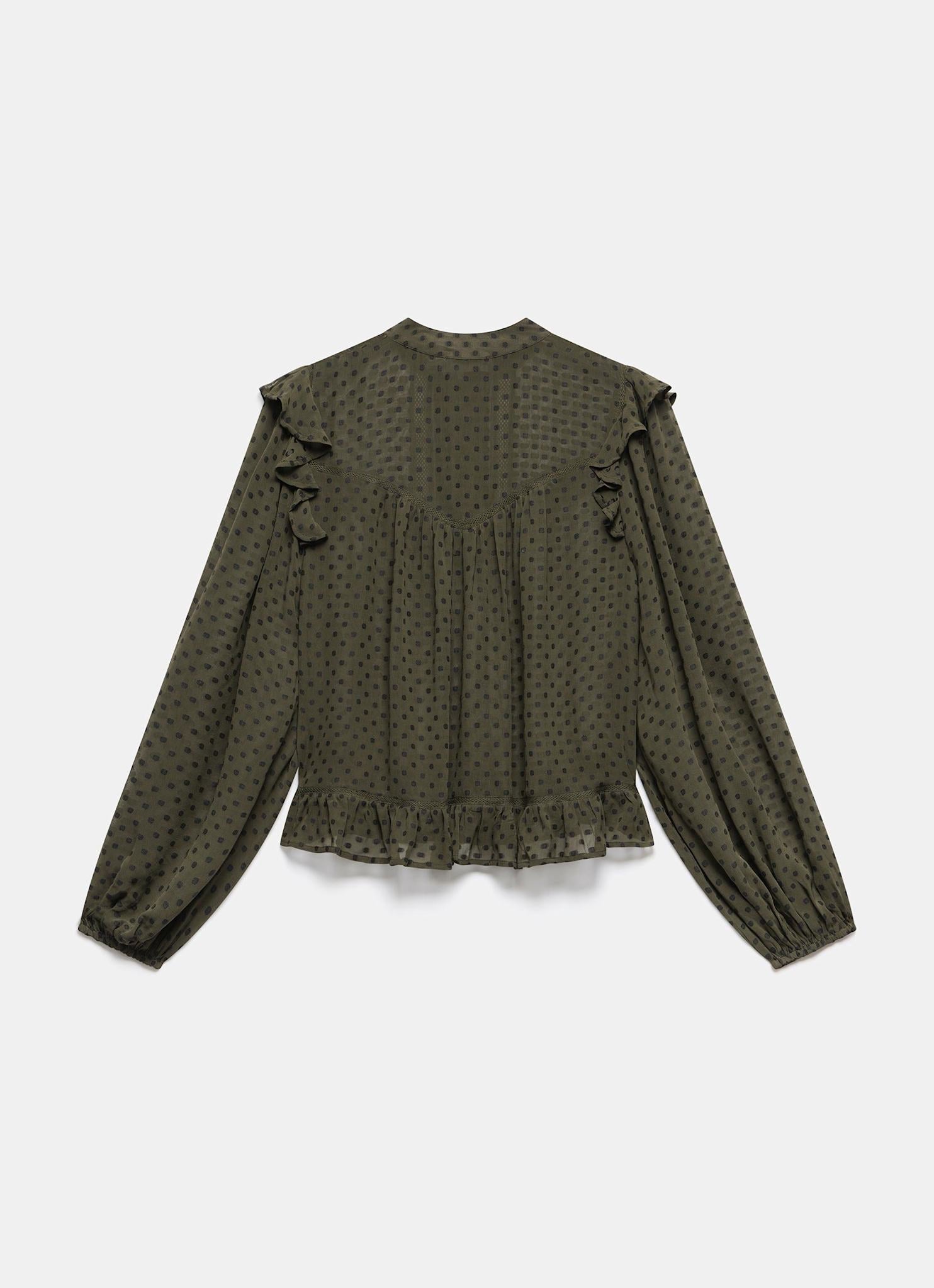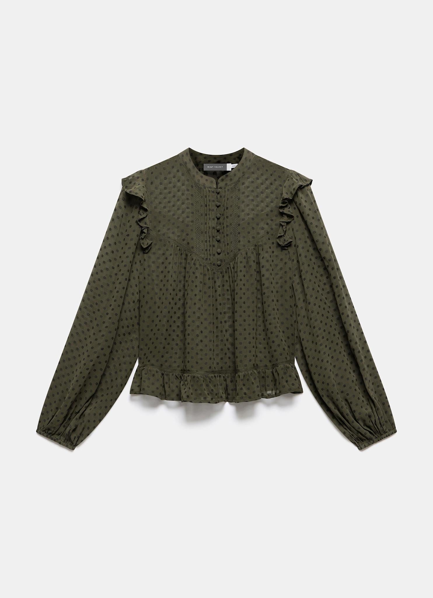 Khaki Jacquard Ruffle Detail Blouse