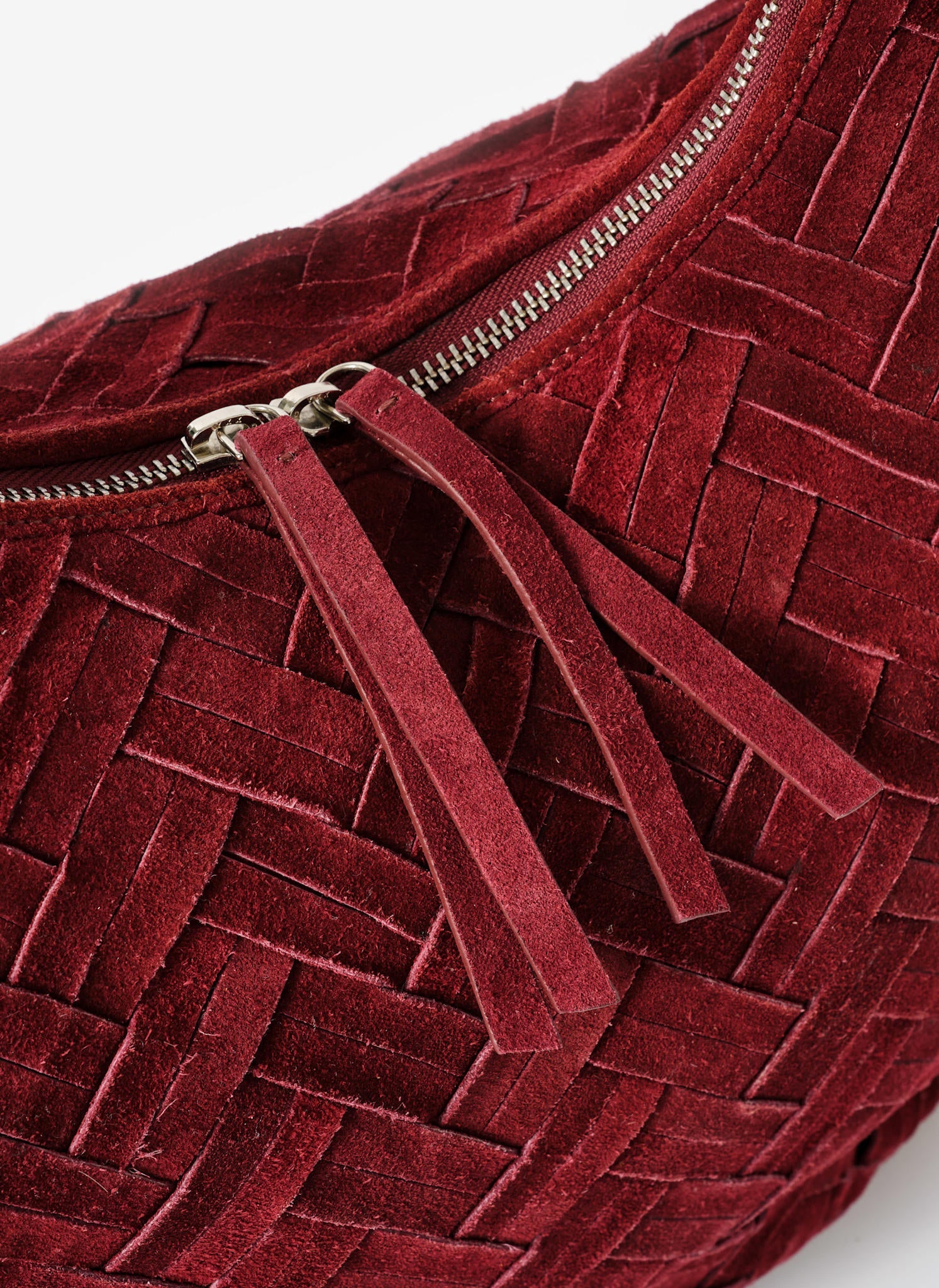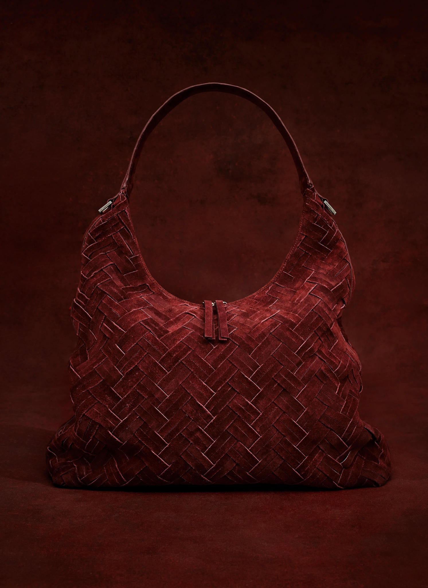 May Burgundy Woven Suede Shoulder Bag