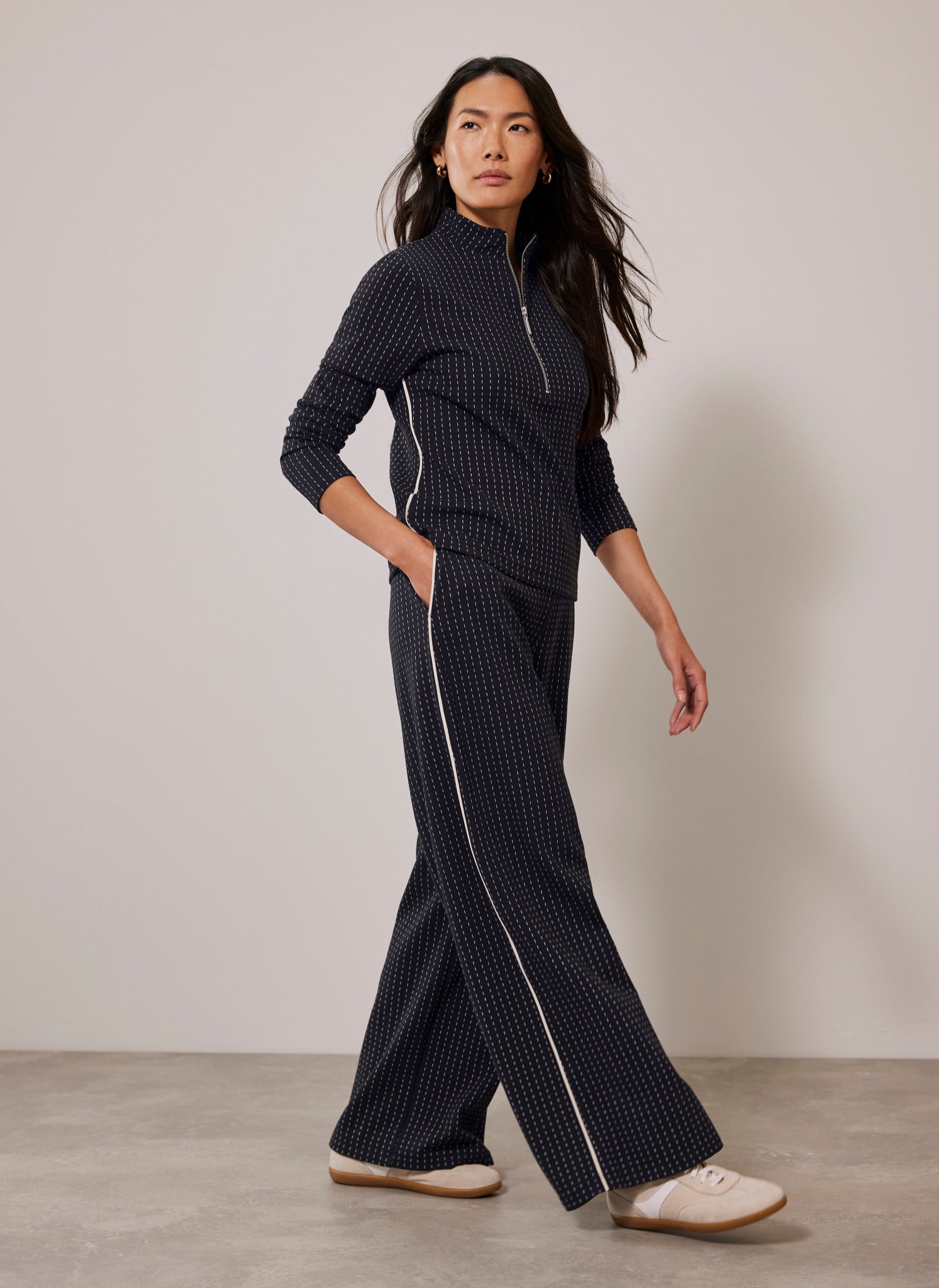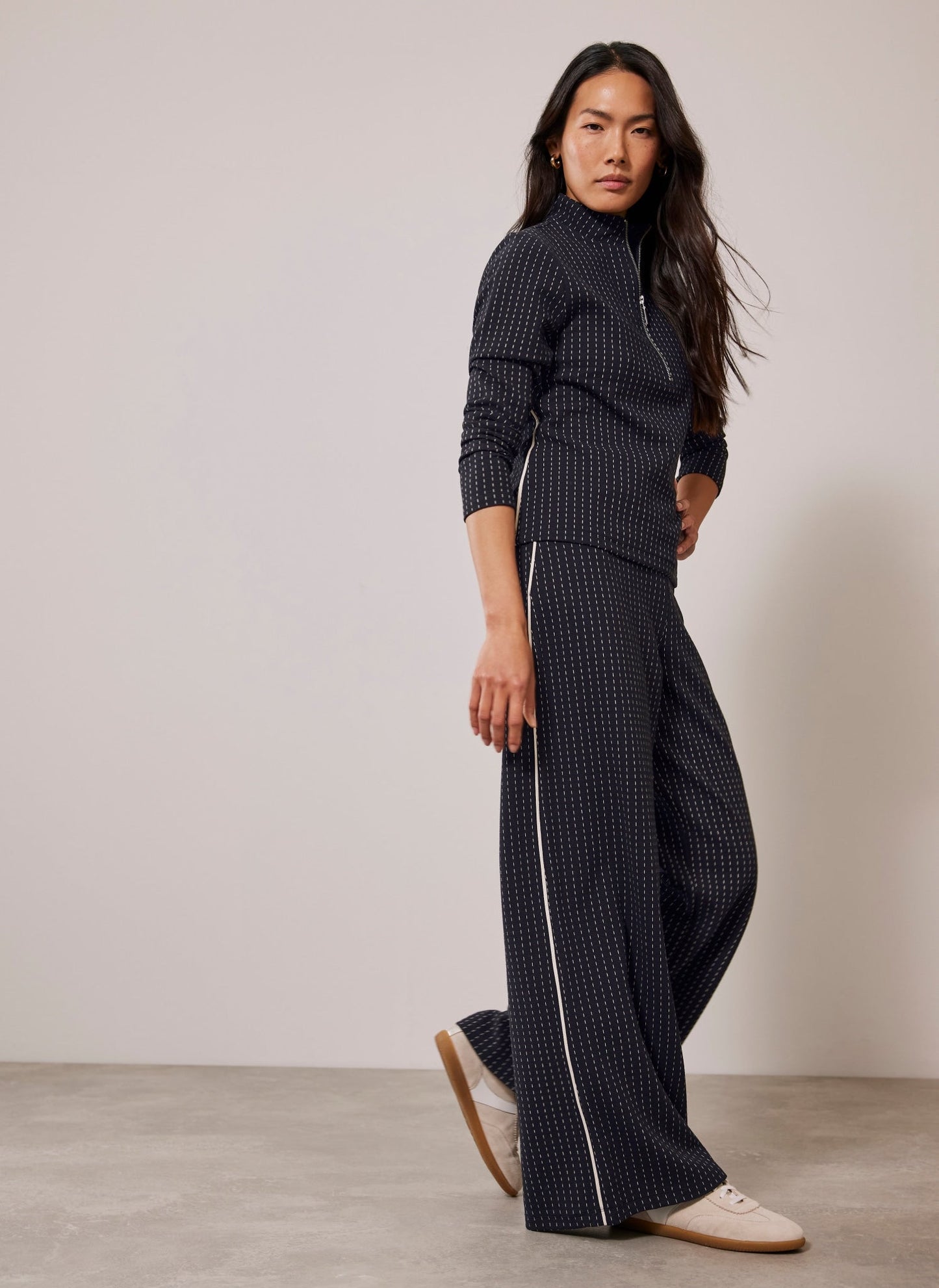 Navy Pinstripe Wide Trousers