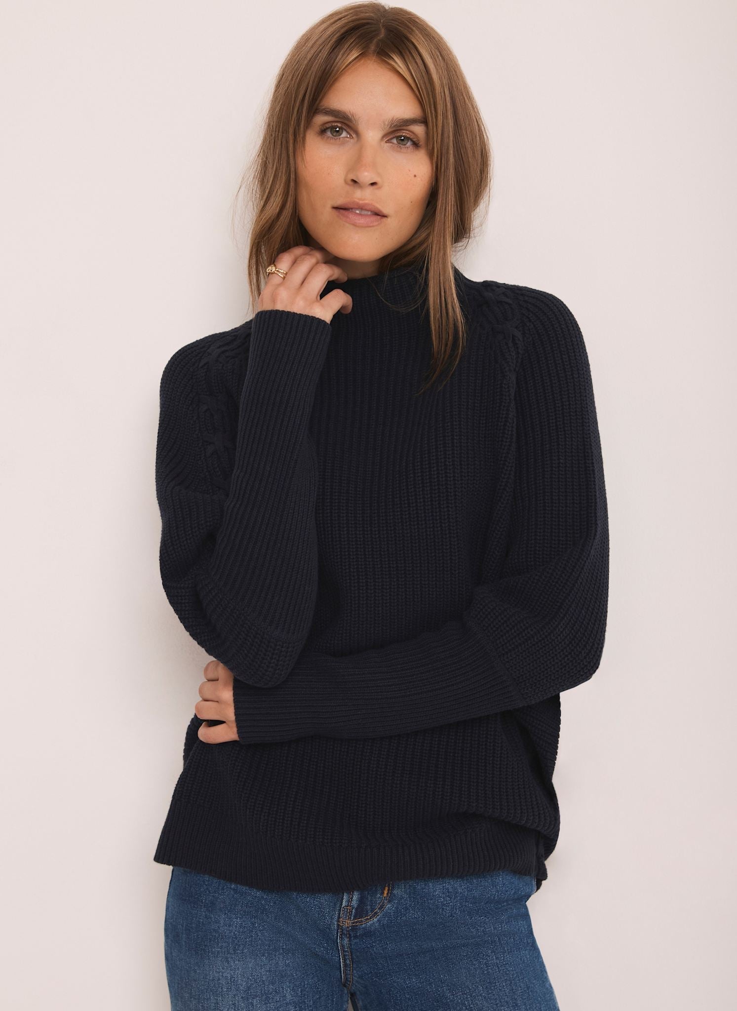 Navy Whipstitch Cotton Blend Jumper