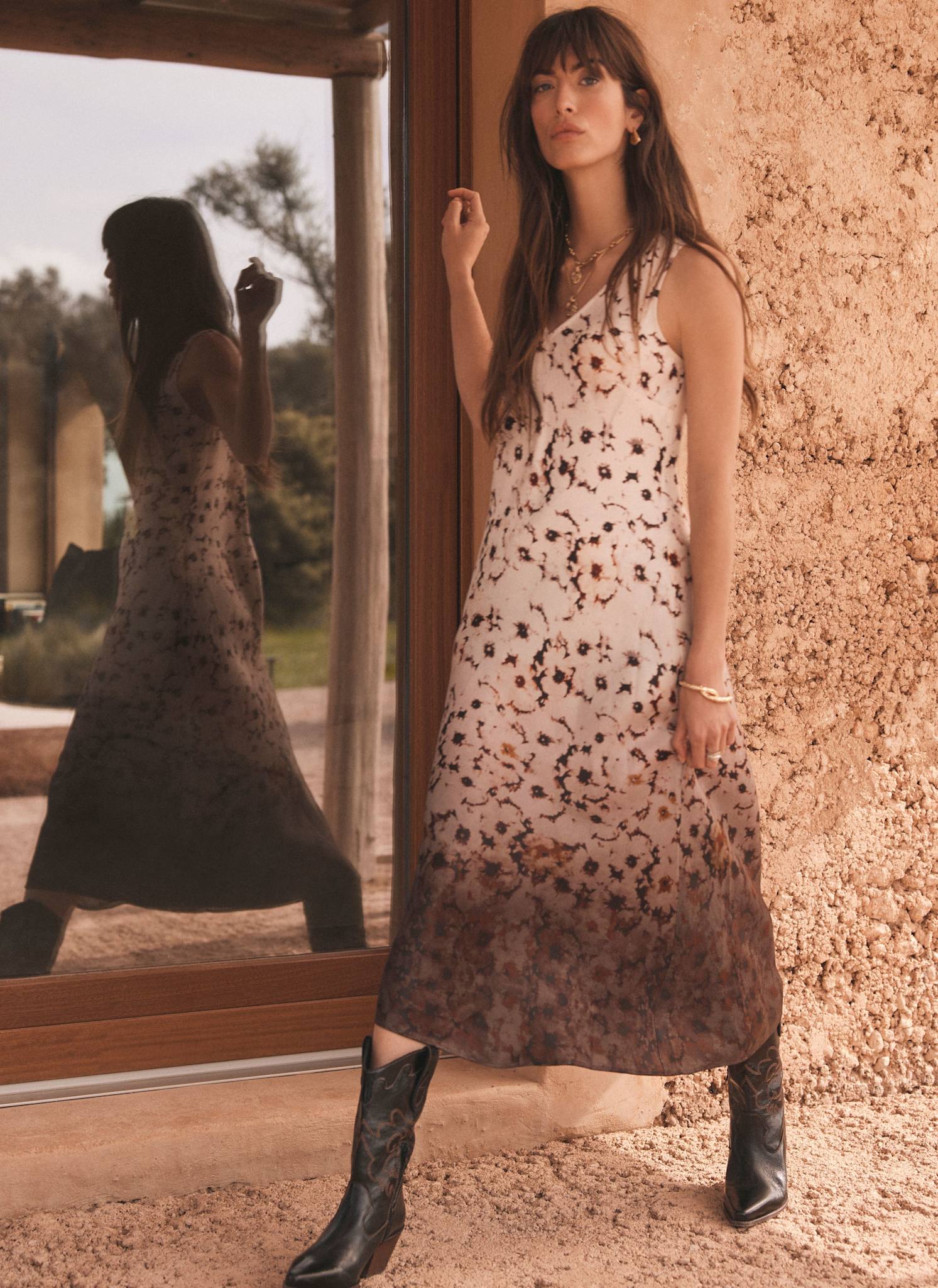 Neutral Floral Ombre Print Midi Dress