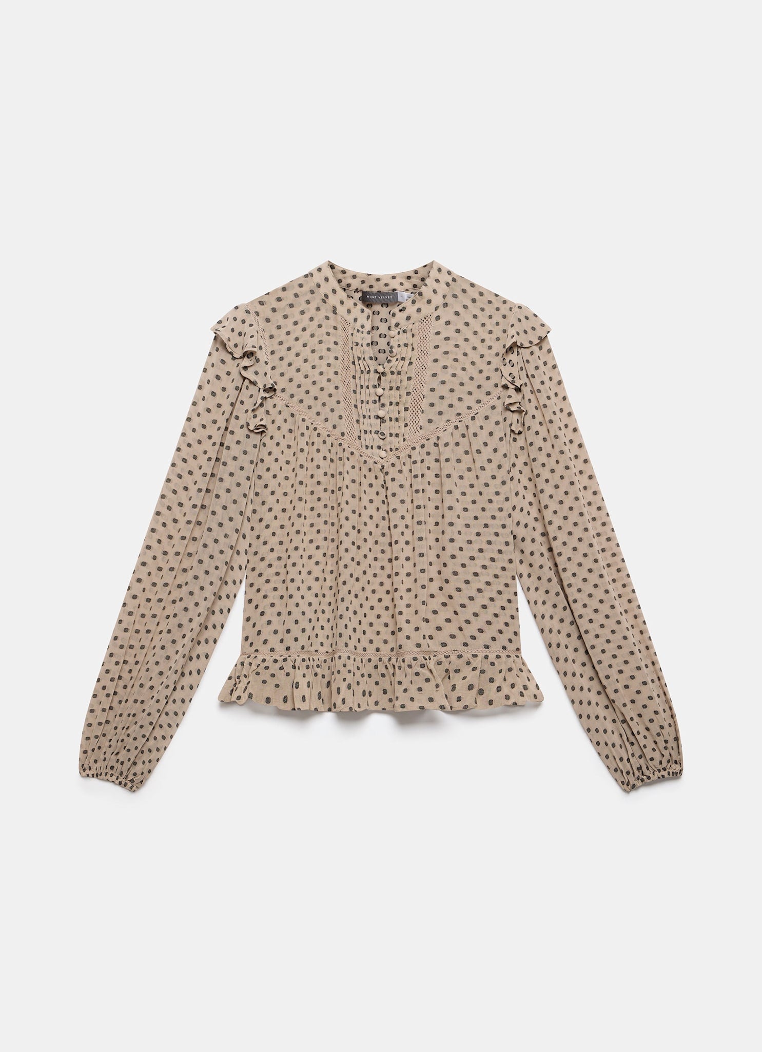 Neutral Jacquard Polka Dot Blouse