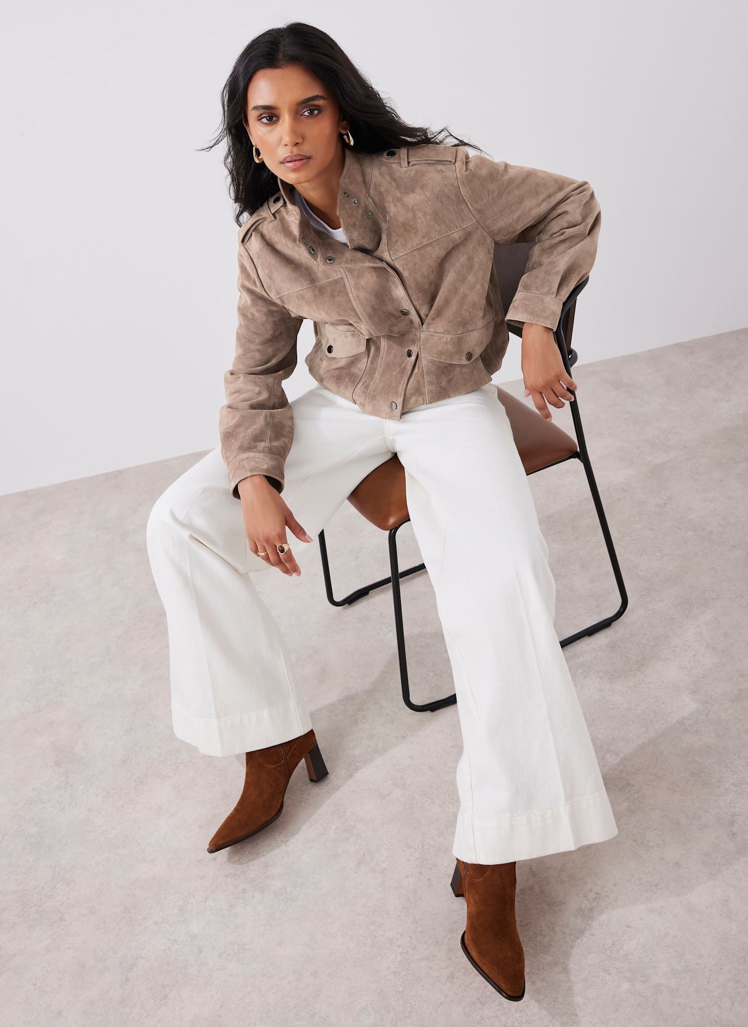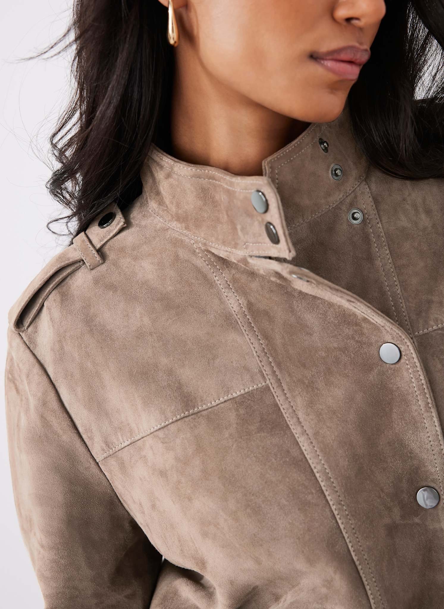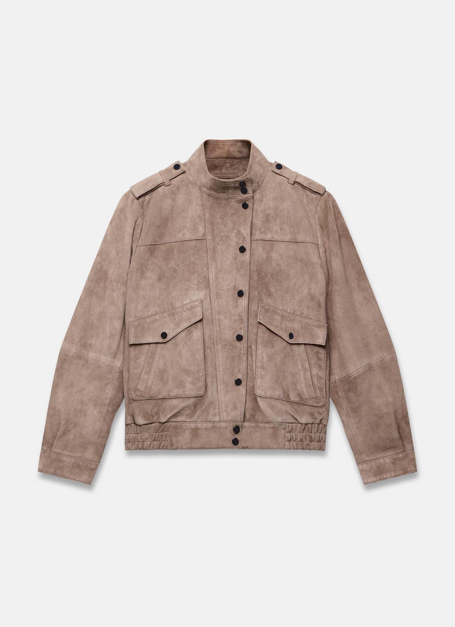 Neutral Suede Bomber Jacket