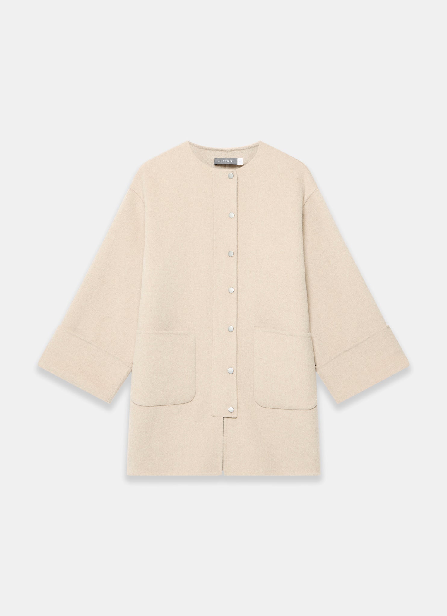 Neutral Wool Blend Hand Finished Collarless Coat