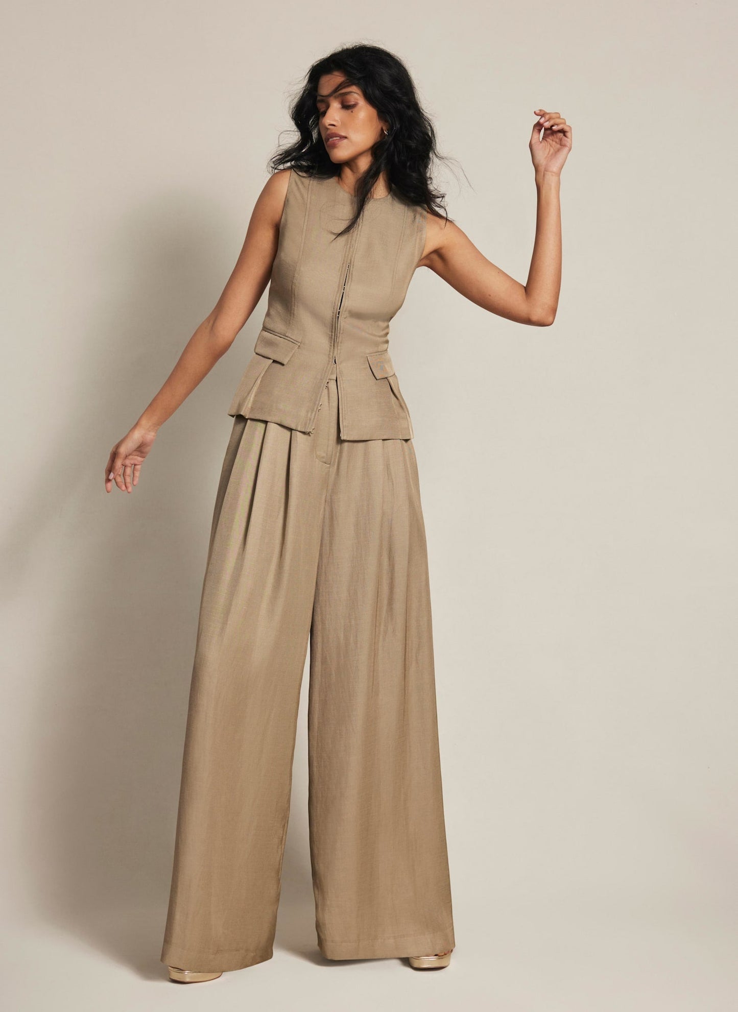 Taupe Pleated Wide Trousers