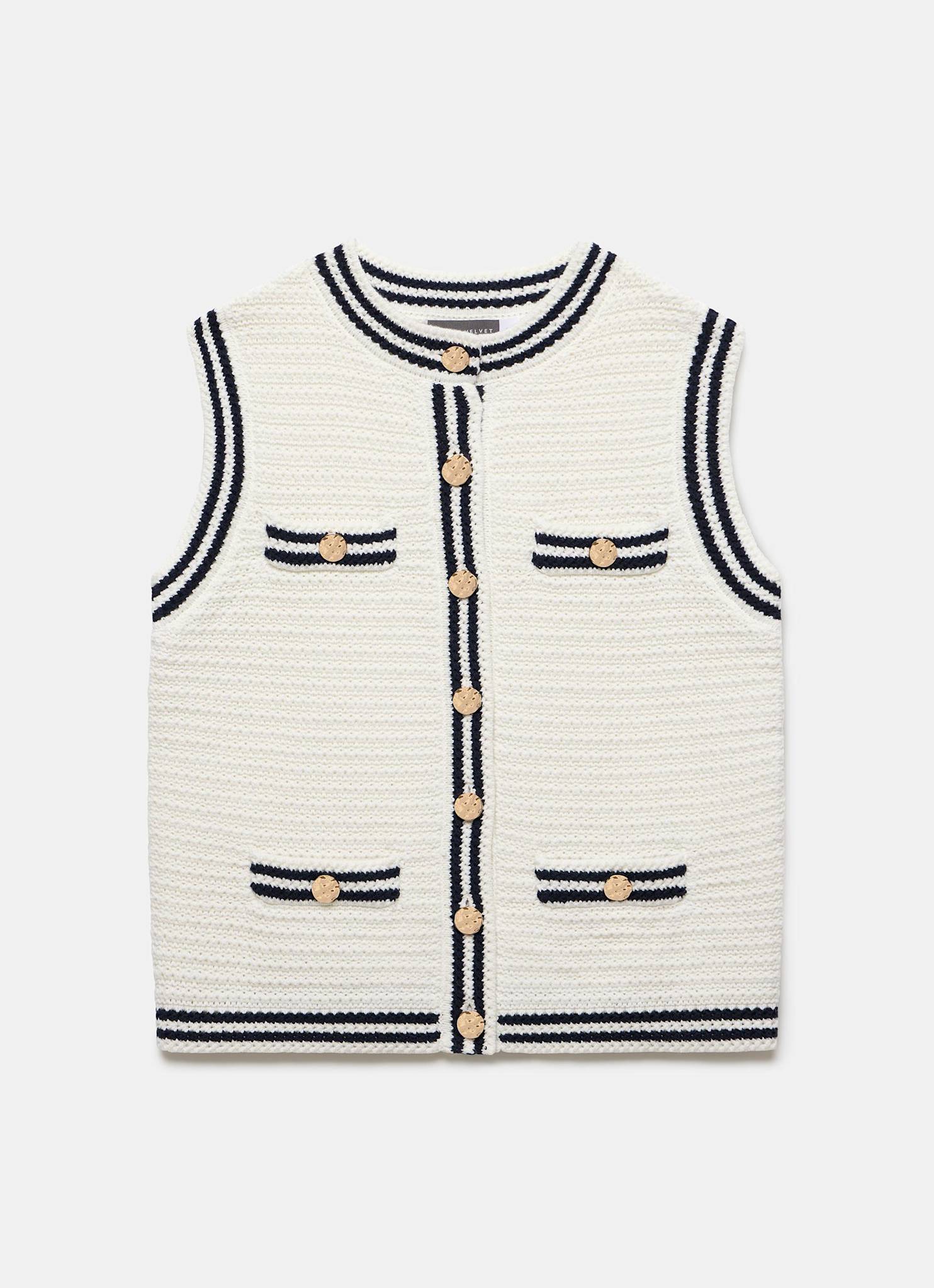White Contrast Trim Knit Waistcoat